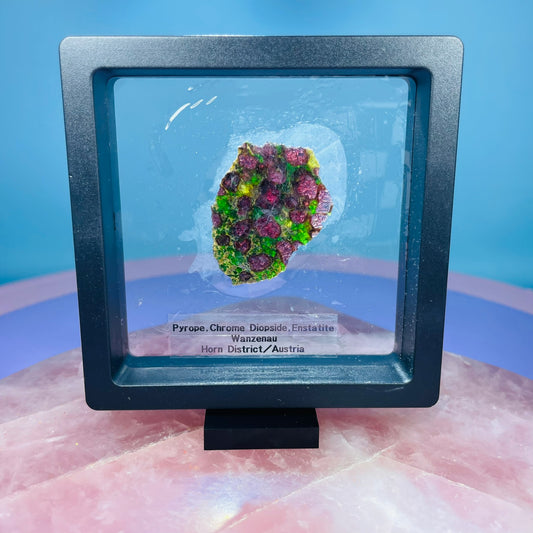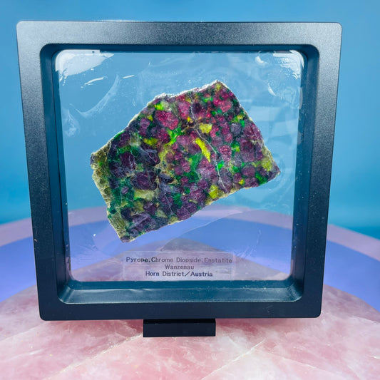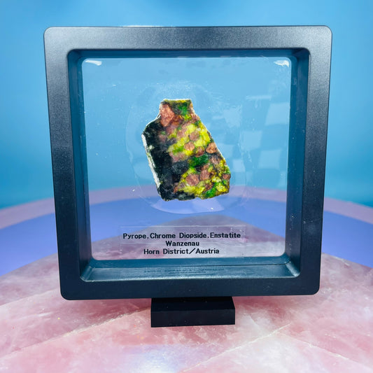 Rare Pyrope, Chrome Diopside + Enstatite Slice Specimen in Frame