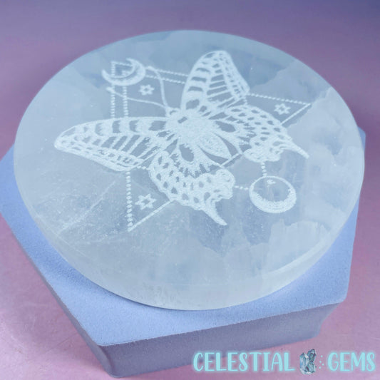 Selenite (Satin Spar) Etched Butterfly Round Cleansing Plate 10cm