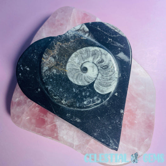 Ammonite Fossil Heart-Shaped Box with Lid