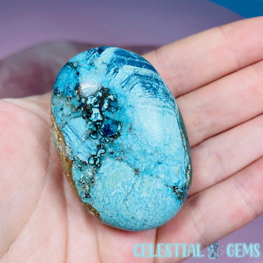 Chrysocolla, Shattuckite + Quartz Palmstone