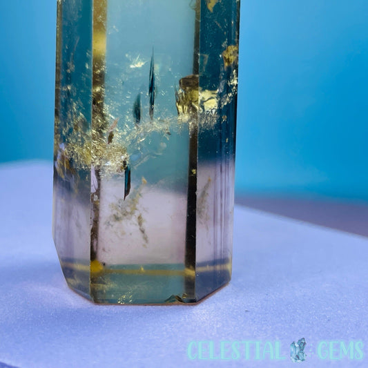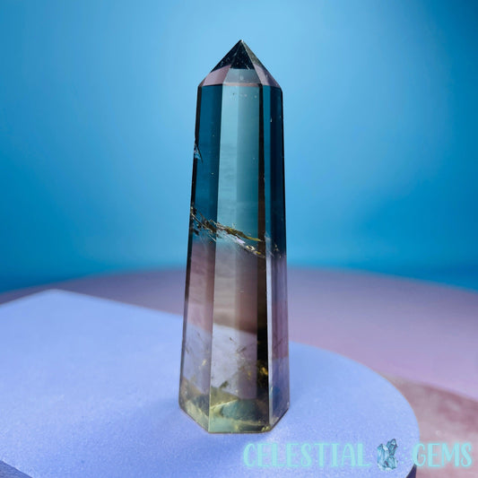 Pink, Blue + Black Tourmaline in Citrine Quartz with Feldspar Raw Small Chunk Specimen