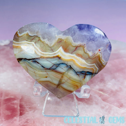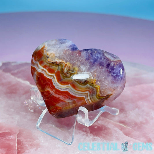 Amethyst + Mexican Crazy Lace Agate Heart Small Carving