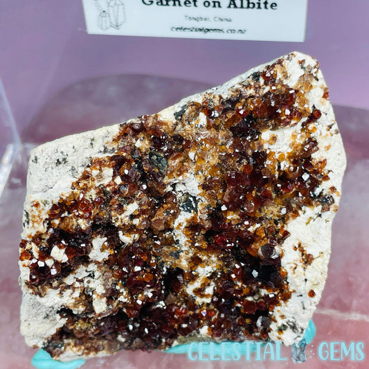Spessartine Garnet Crystals on Albite Medium Specimen in Box