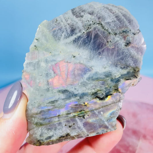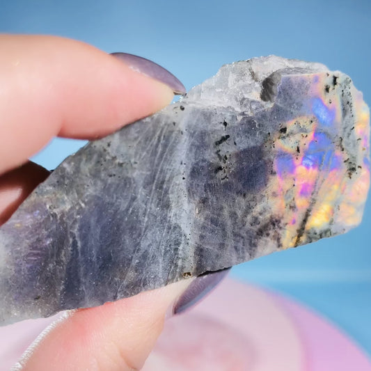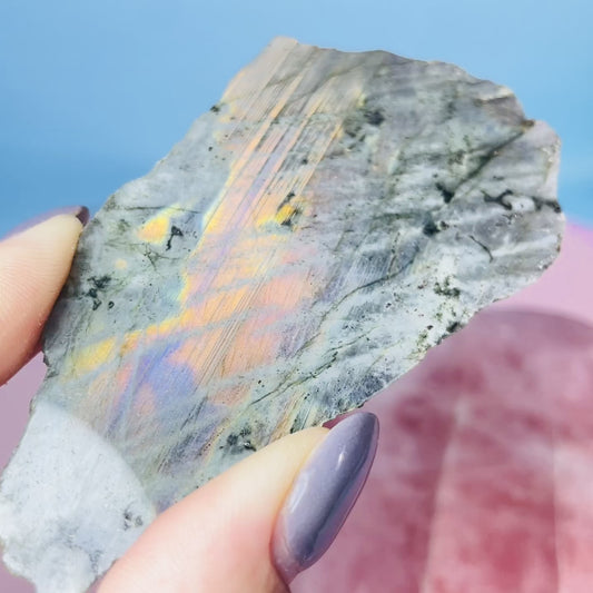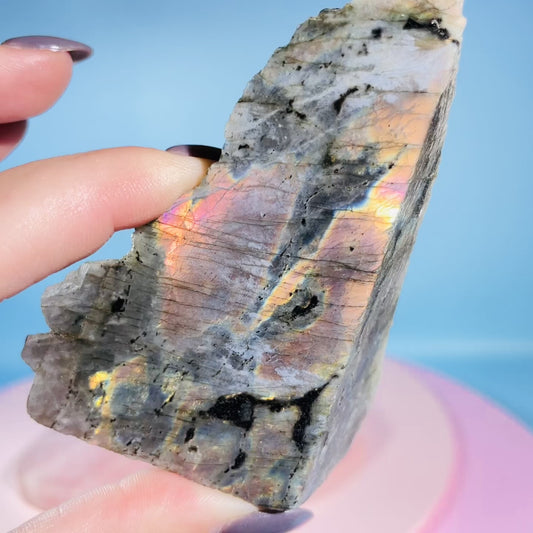 Rainbow Labradorite Small Semi-Polished Slab Piece (Video)