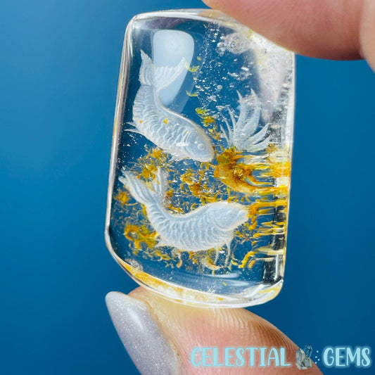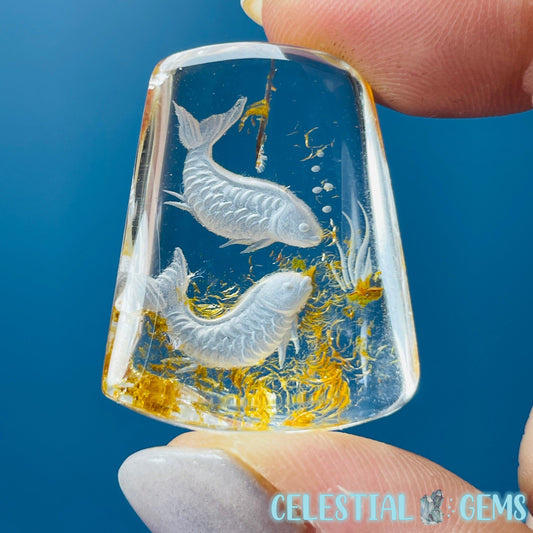Garden Quartz Koi Carp Fish Hand-Carved Intaglio Reverse Lens Carving (Video)