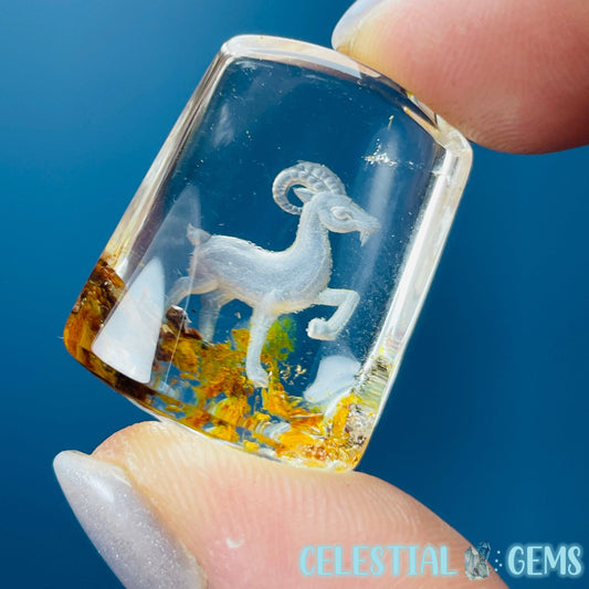 Garden Quartz Aries Ram Goat Hand-Carved Intaglio Reverse Lens Carving (Video)