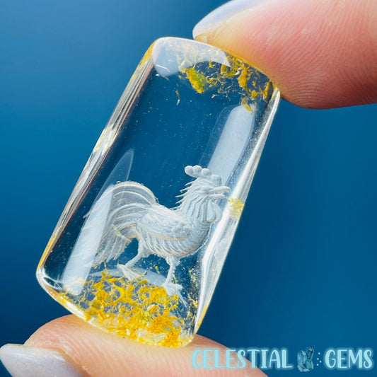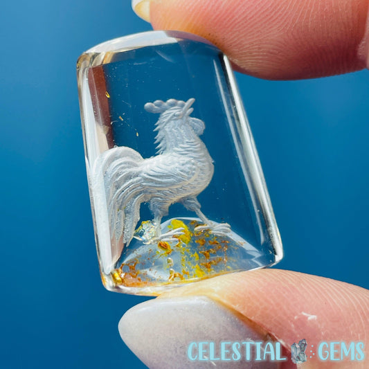 Garden Quartz Rooster Hand-Carved Intaglio Reverse Lens Carving (Video)