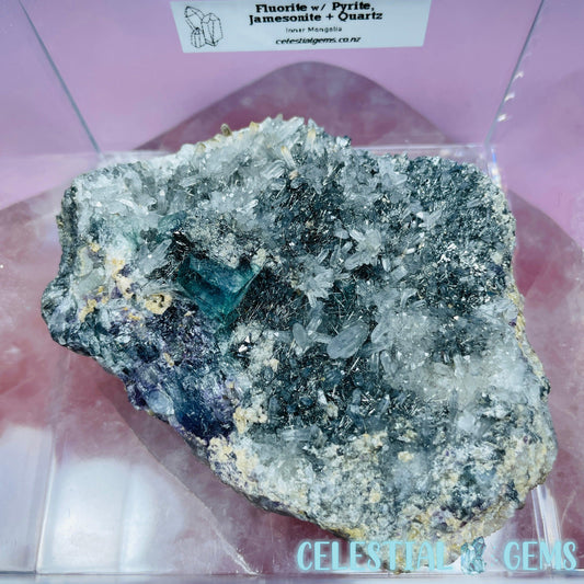 VERY RARE Inner Mongolia Colour-Zoned Fluorite with Pyrite, Jamesonite + Quartz Medium Cluster Specimen