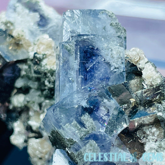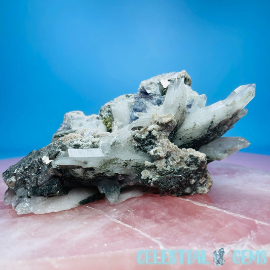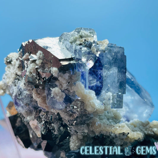RARE Yaogangxian Blue Fluorite, Pyrite + Quartz Medium Cluster Specimen