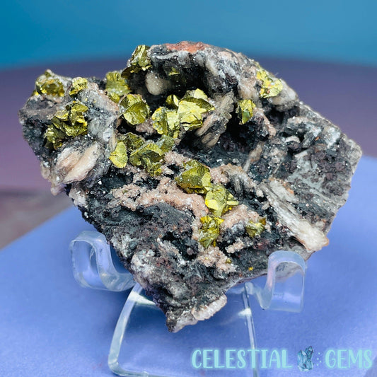 RARE Yaogangxian Colour-Zoned Fluorite, Mica, Chalcopyrite + Chlorite Mini Cluster Specimen
