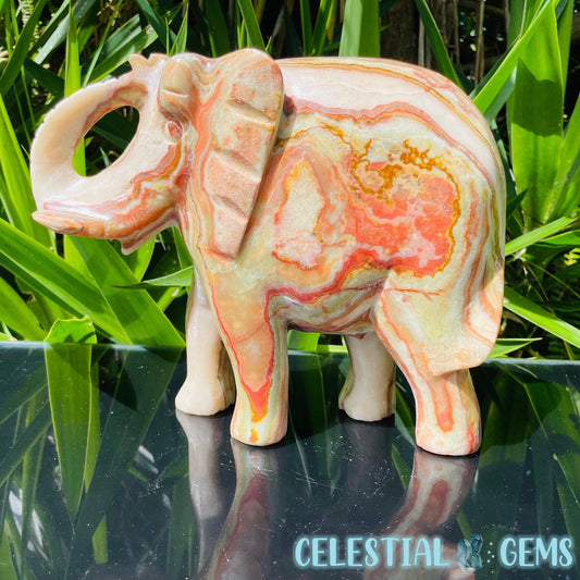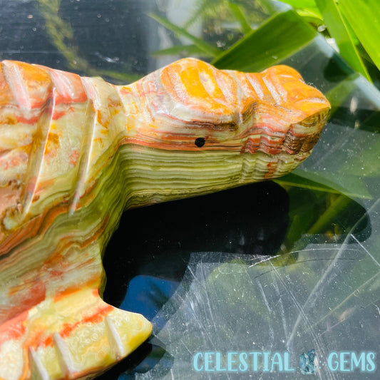 Banded Onyx Calcite Chinese Dragon Large Carving