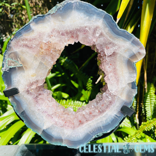 Pink Amethyst Large Semi-Polished Slice on Stand