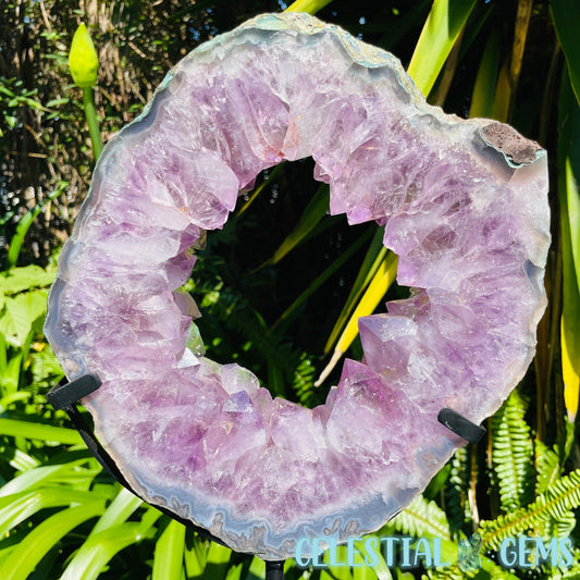 Pink Amethyst XL Semi-Polished Slice on Stand