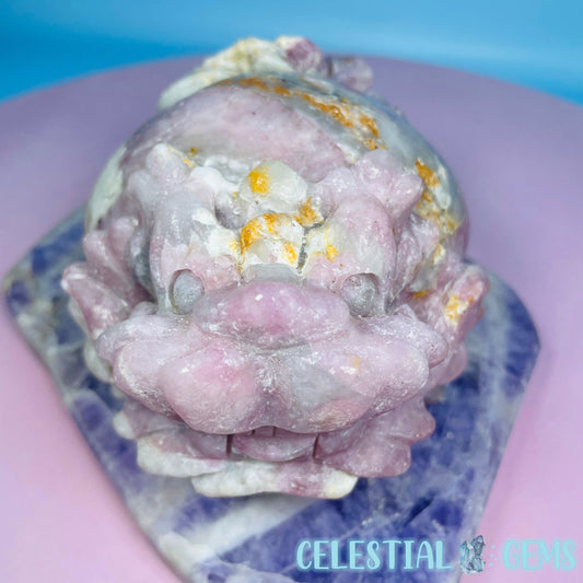 Rose Quartz Alien Skull on Spine Large Carving