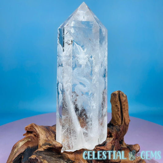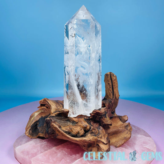 Pink Amethyst + Quartz XL Crescent Moon Carving on Stand