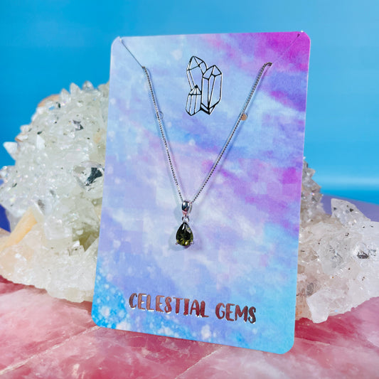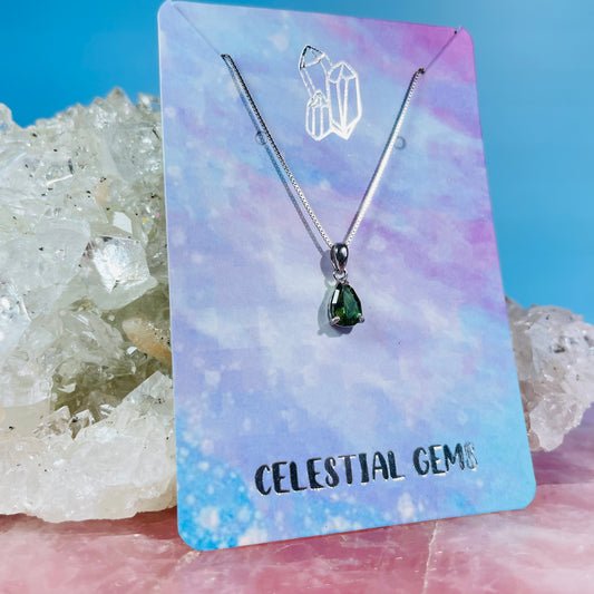Faceted Moldavite Teardrop 925 Silver Necklace