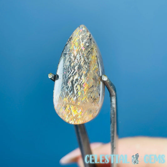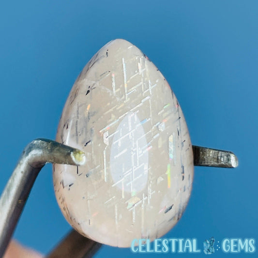 Rare Rainbow Lattice Sunstone Polished Cabochon Specimen in Pottle (Video)