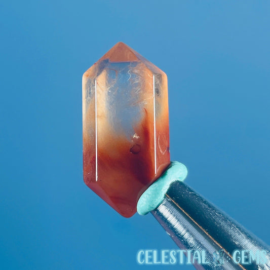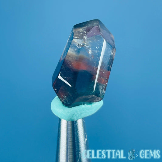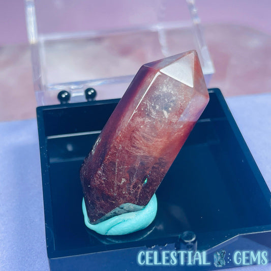 Red Amphibole Quartz Faceted Gemstone in Specimen Box