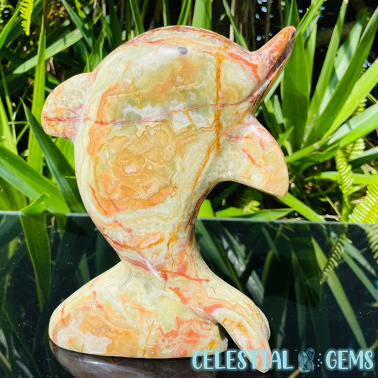 Banded Onyx Calcite Chinese Dragon Large Carving