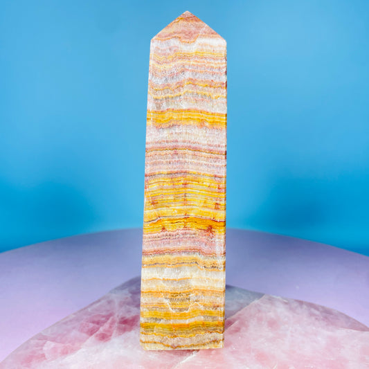 Mangano Calcite in Volcanic Agate Small Tower (Double UV Reaction)