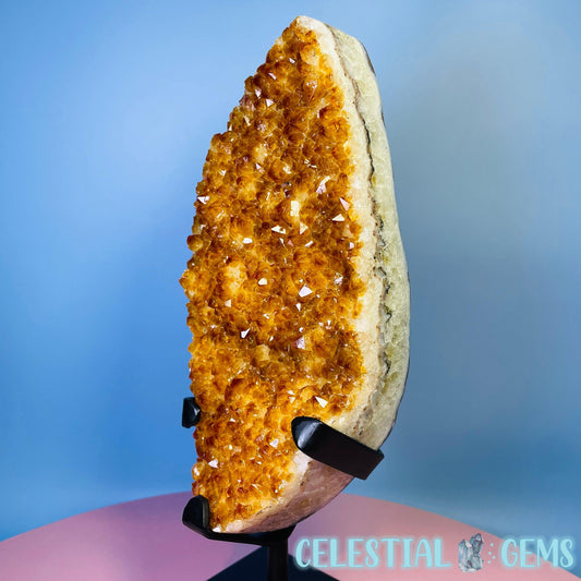High Quality Citrine (HT) Polished Large Cluster on Metal Stand