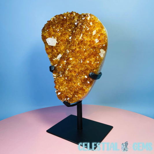 High Quality Citrine (HT) + Calcite Polished Large Cluster on Metal Stand