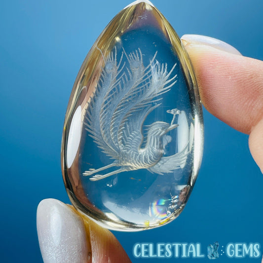 Citrine Flying Phoenix Hand-Carved Intaglio Reverse Lens Carving (Video)