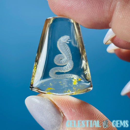 Citrine Garden Quartz Cobra Snake Hand-Carved Intaglio Reverse Lens Carving (Video)