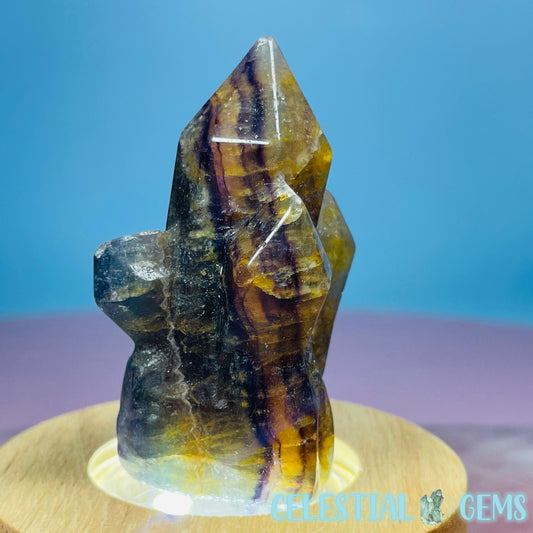 Purple/Yellow Candy-Striped Fluorite Gorilla Carving