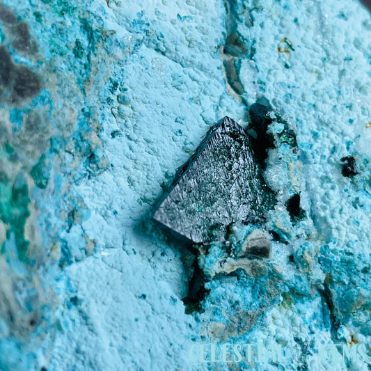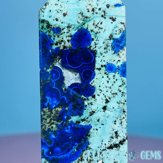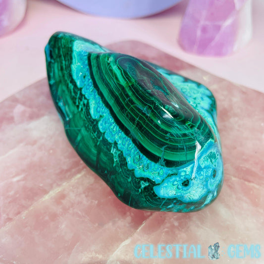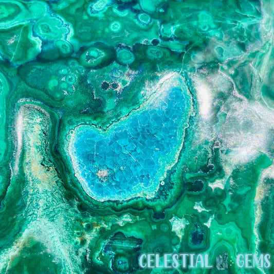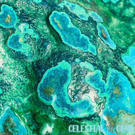 Chrysocolla, Shattuckite, Malachite + Dioptase Palmstone