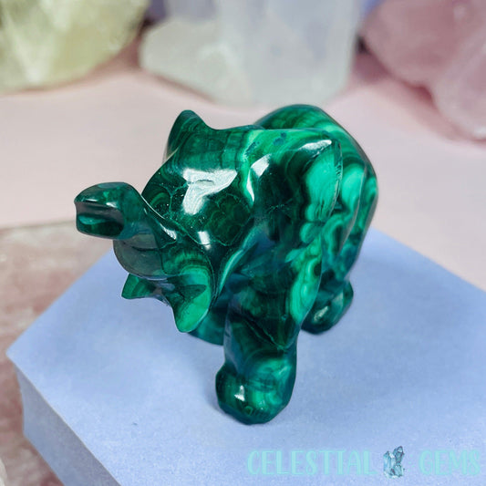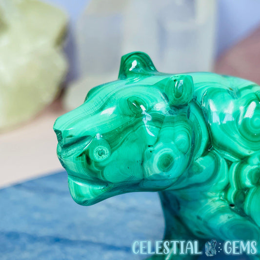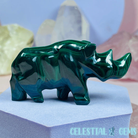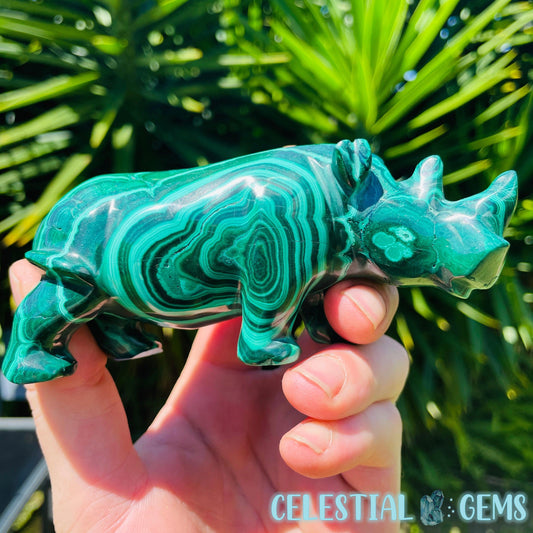 High Grade Malachite Rhinoceros Medium Carving (Gem Silica Inclusions!) B