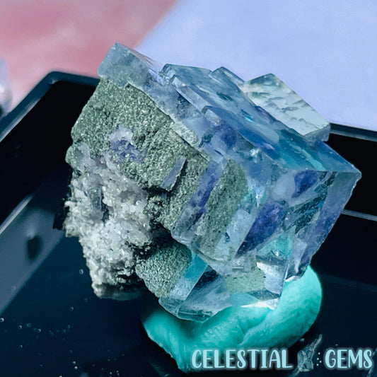 RARE Yaogangxian Colour-Zoned Fluorite with Chlorite + Mica Mini Cluster Specimen