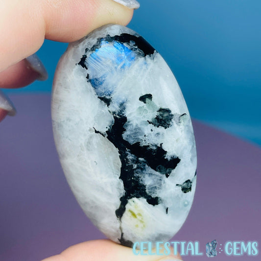 Belomorite Moonstone Circle Pocket Stone (Super Flashy!)