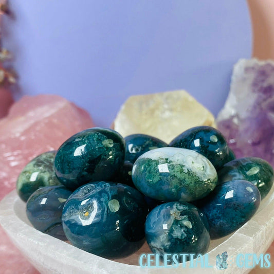 Owhyee Blue Opal with Moss Agate Oval Shiva Lingam Stone
