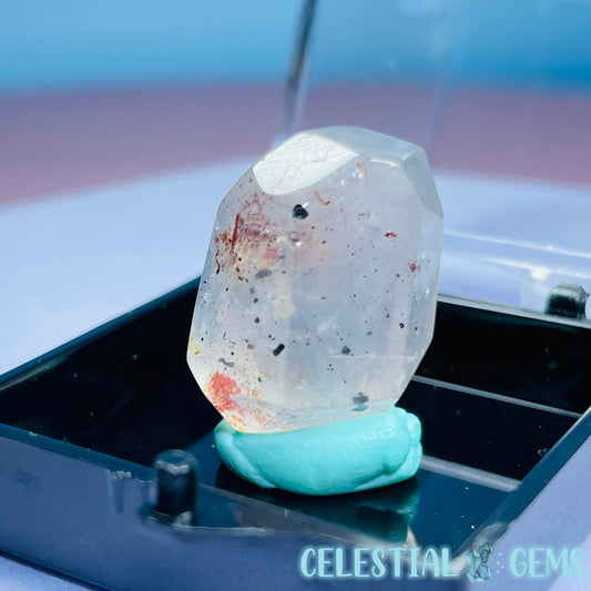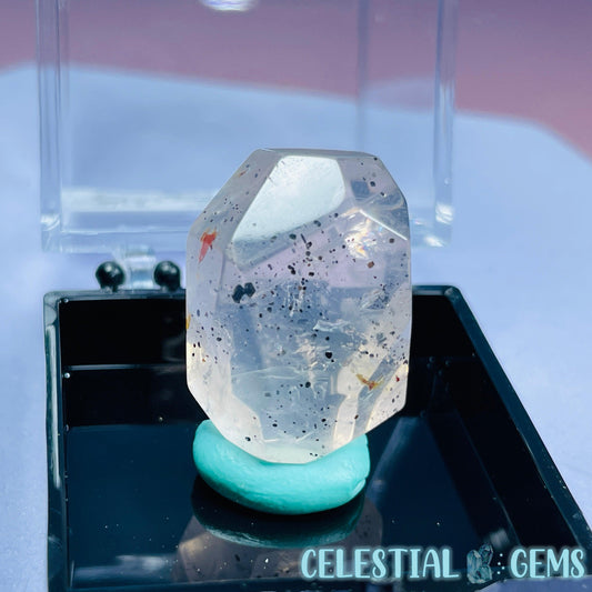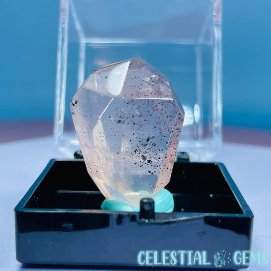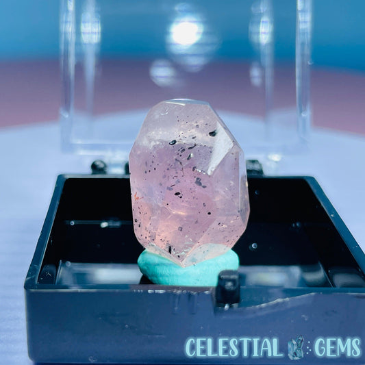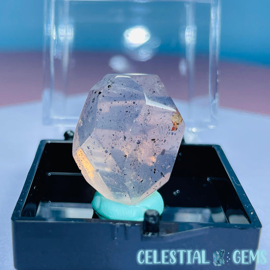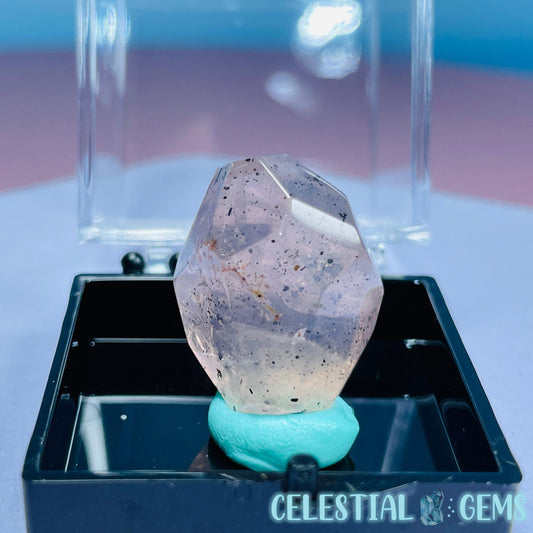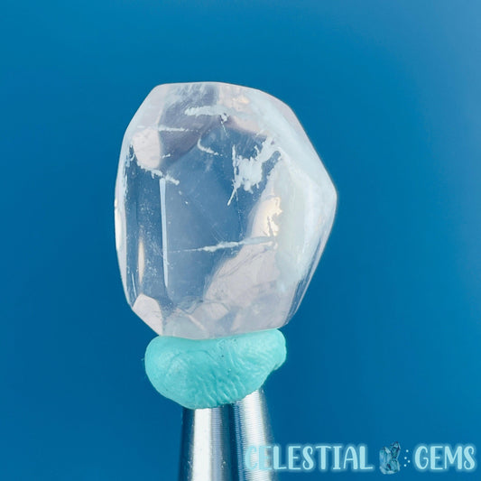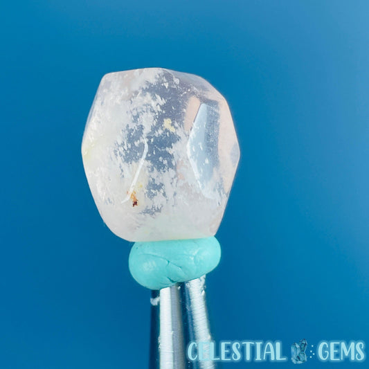 Feather Snow Rose Quartz Faceted Gemstone in Specimen Pottle