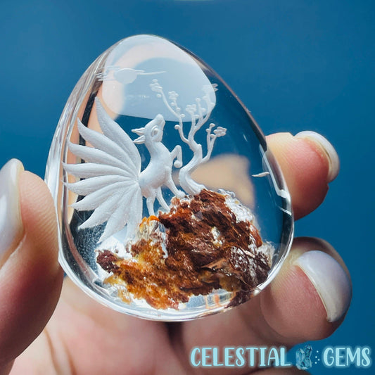 Garden Quartz Nine-Tailed Fox + Tree Hand-Carved Intaglio Reverse Lens Carving (Video)
