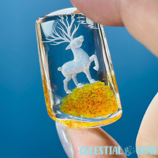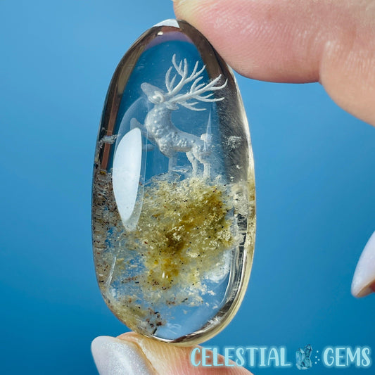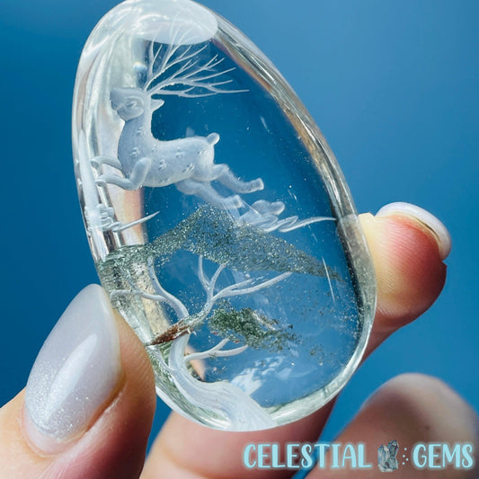 Phantom Garden Quartz Prancing Stag Deer + Tree Hand-Carved Intaglio Reverse Lens Carving (Video)