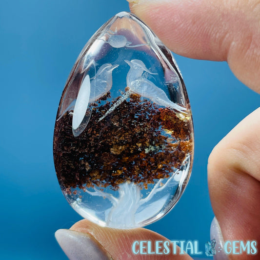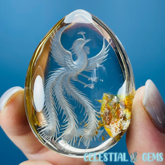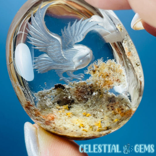 Garden Quartz Phoenix + Tree Hand-Carved Intaglio Reverse Lens Carving (Video)