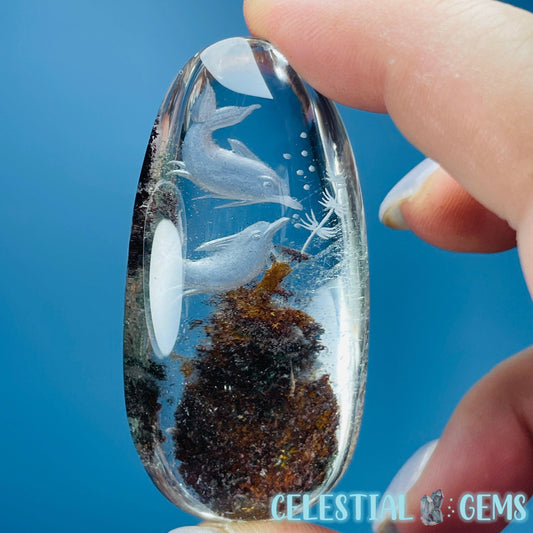 Phantom Garden Quartz Underwater Dolphins Hand-Carved Intaglio Reverse Lens Carving (Video)