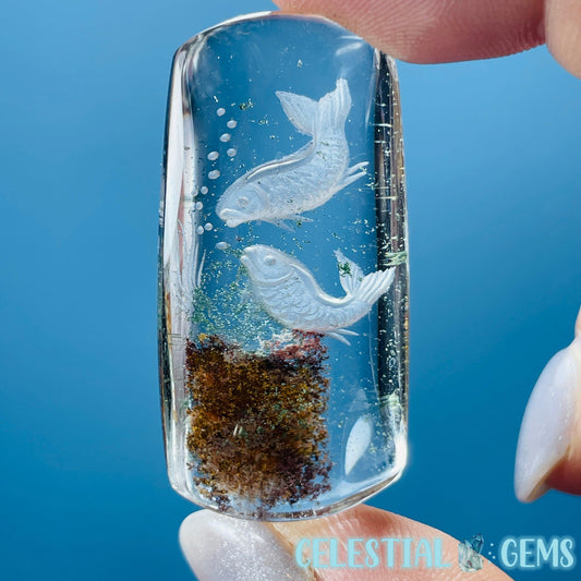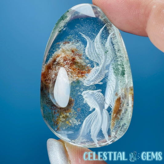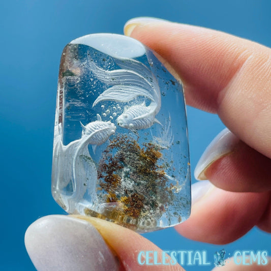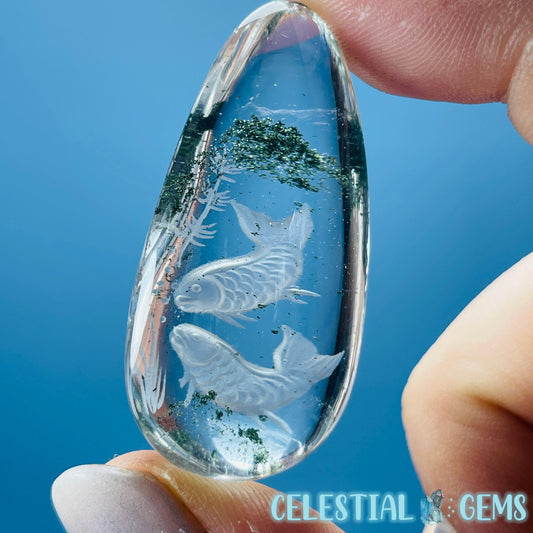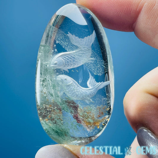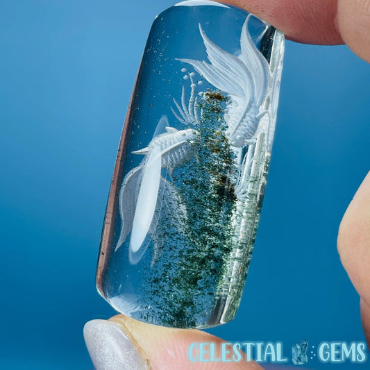 Phantom Garden Quartz Underwater Koi Carp Fish Hand-Carved Intaglio Reverse Lens Carving (Video)