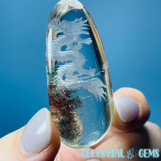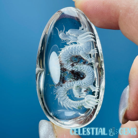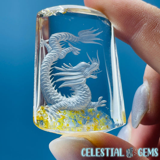 Garden Quartz Flying Chinese Dragon Hand-Carved Intaglio Reverse Lens Carving (Video)