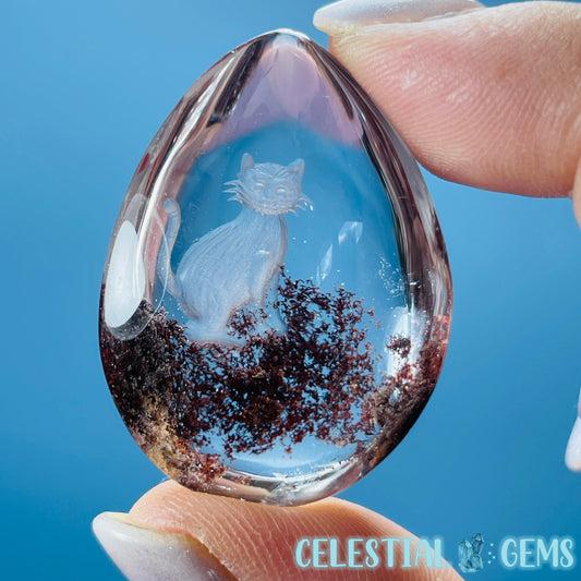 Garden Quartz Kitty Cat Hand-Carved Intaglio Reverse Lens Carving (Video)