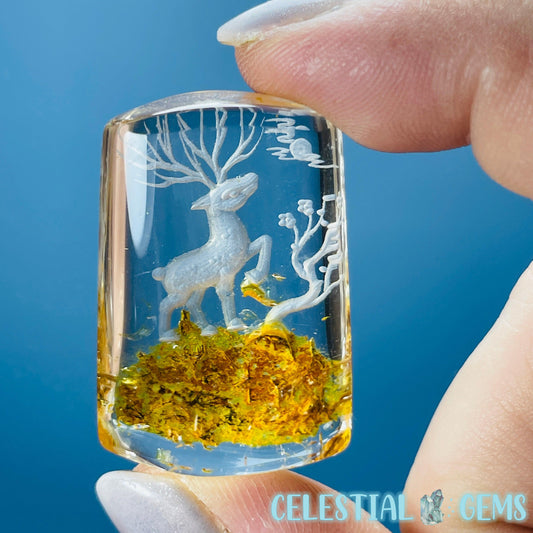 Garden Quartz Stag Deer + Tree Hand-Carved Intaglio Reverse Lens Carving (Video)