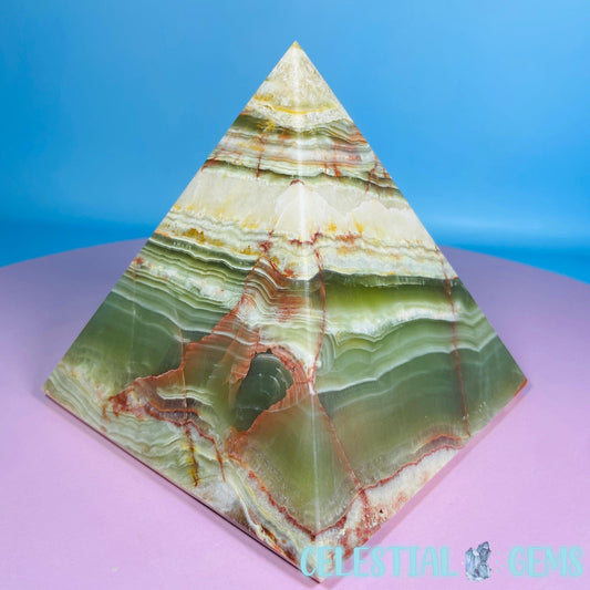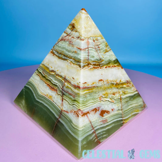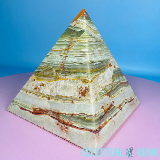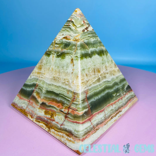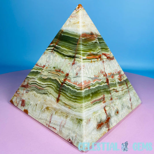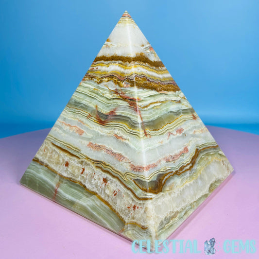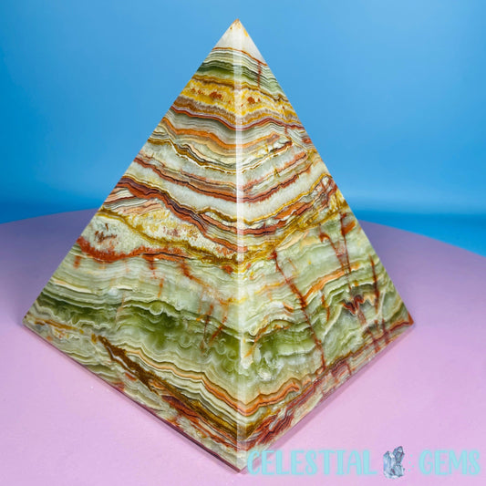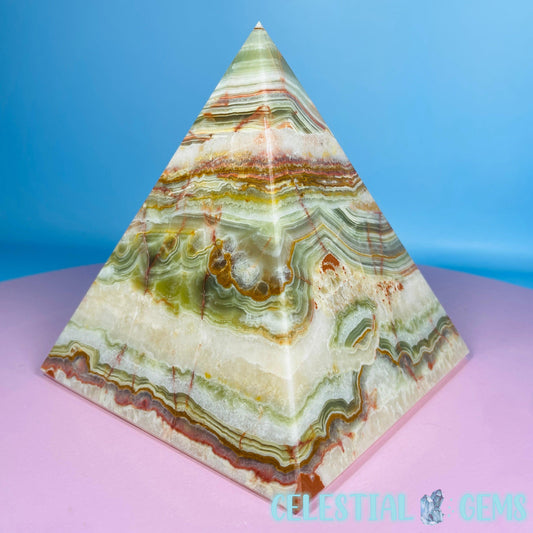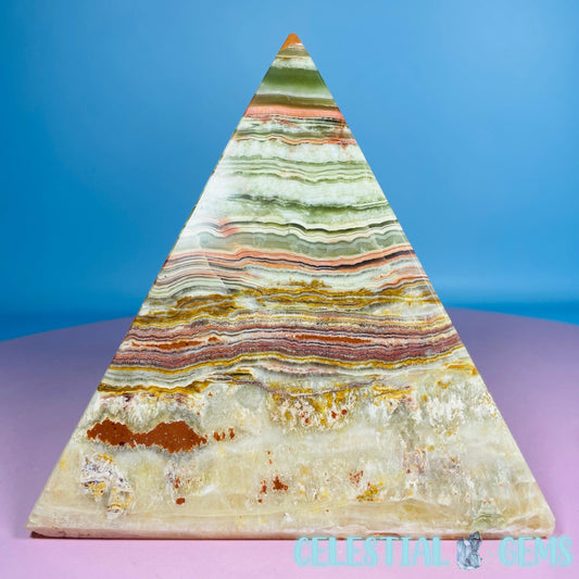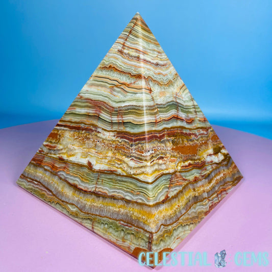 Banded Onyx Calcite Pyramid Carving - Large