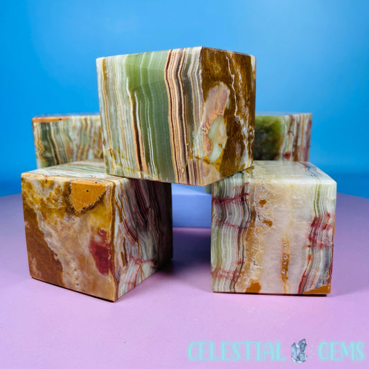 Banded Onyx Calcite Cube Carving - Medium