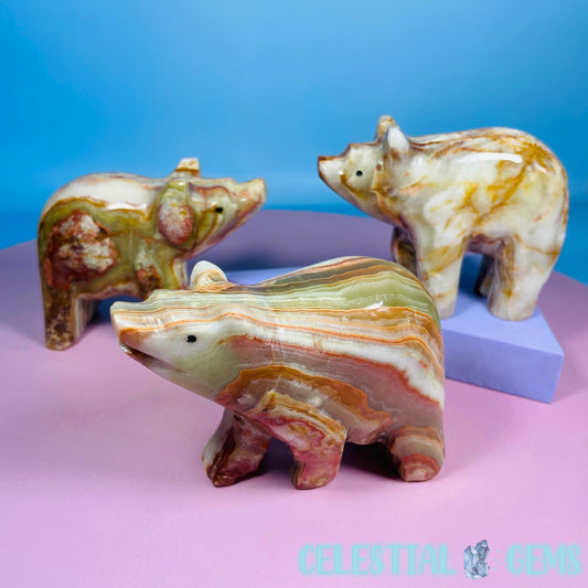 Banded Onyx Calcite Bear Carving - Medium