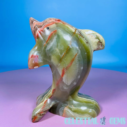 Banded Onyx Calcite Dolphin Carving - Medium