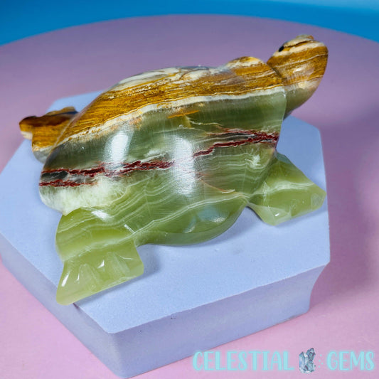 Banded Onyx Calcite Turtle Carving - Medium