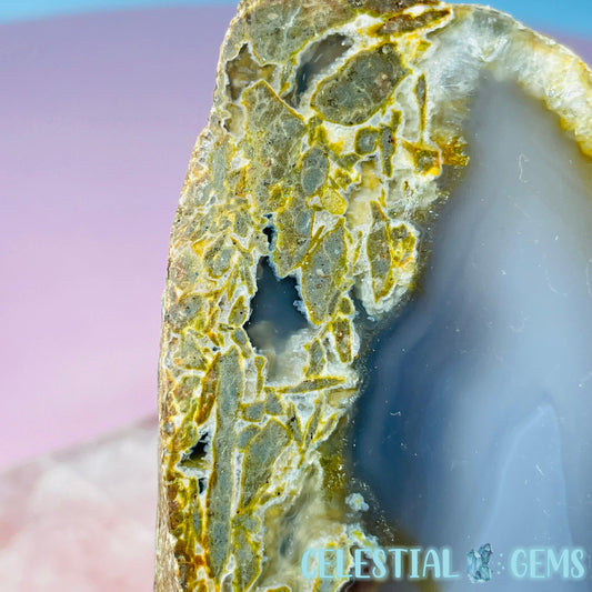 Pink Amethyst Large Semi-Polished Slice on Stand