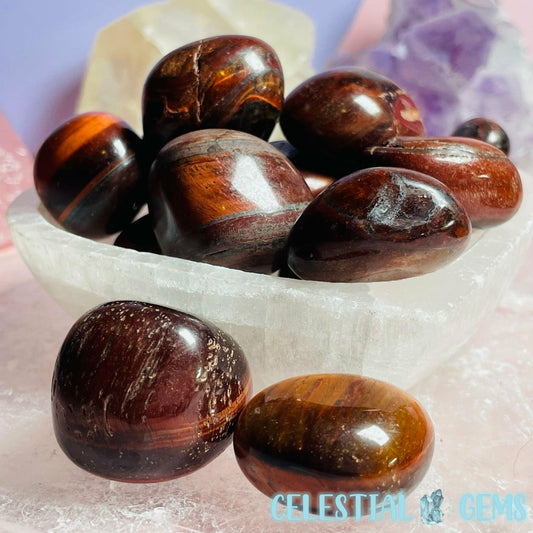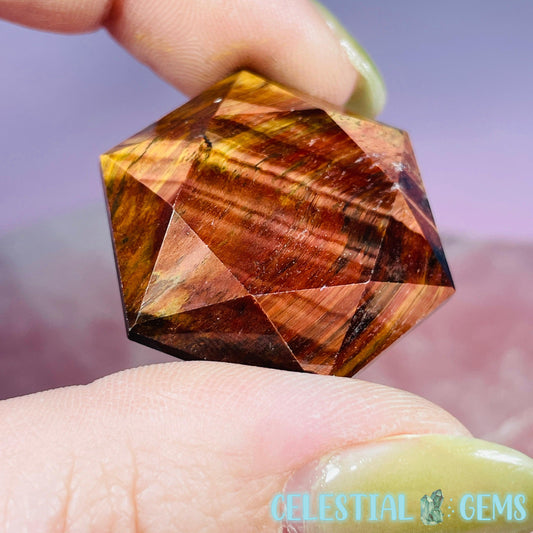High Grade Red Tigers Eye Hexagram Pocket Stone Carving